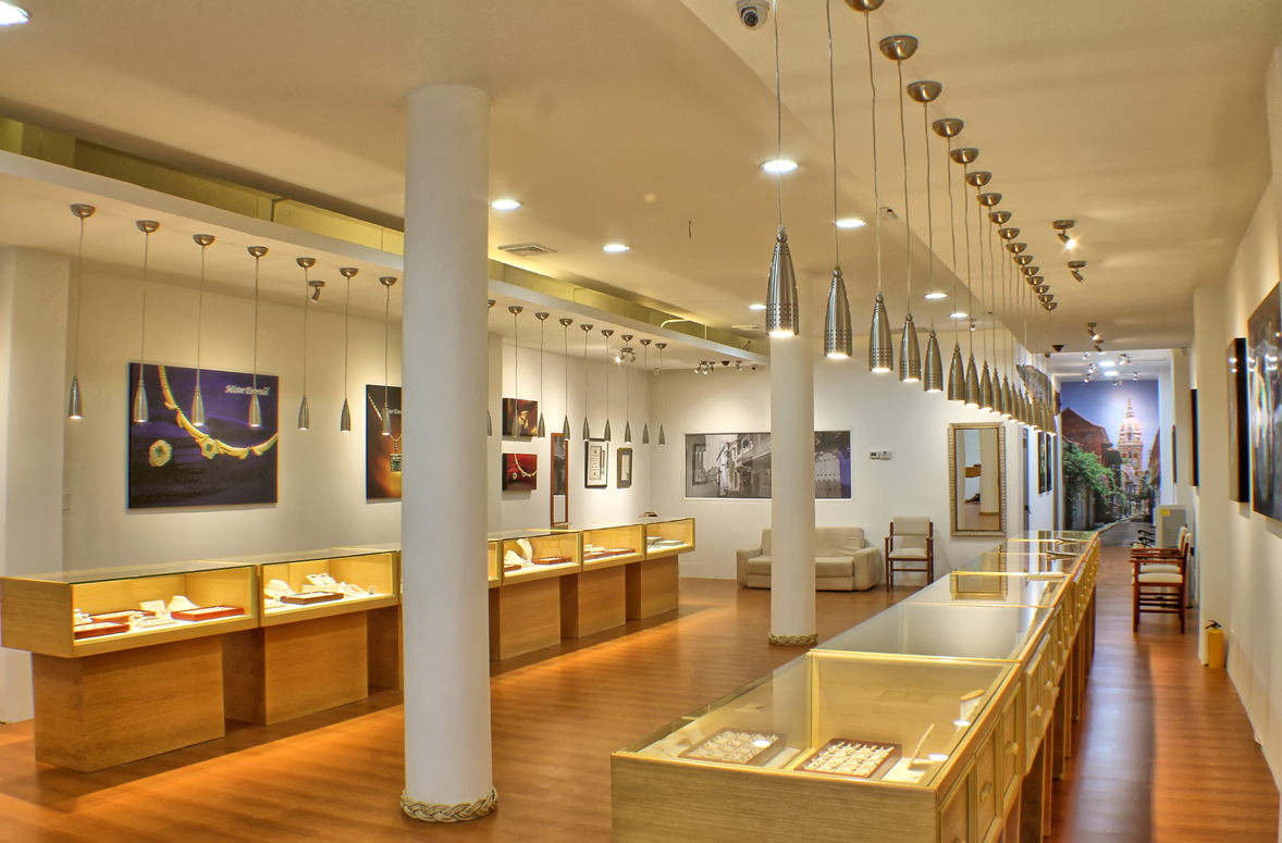 At the shop in Cartagena we offer emeralds mounted in 18-karat gold and in sterling silver. All the emeralds are natural stones, bought loose; we do all the designing and mounting. Every piece is hand made, unique, and backed by solid guarantees and certification.