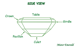 Next is the color. The more green the stone, with less of a blue or yellow component, and the more saturated and intense the color, the better. It can be too dark, however. You want to be able to see the color when the stone is mounted, so a medium-dark green color is optimal.